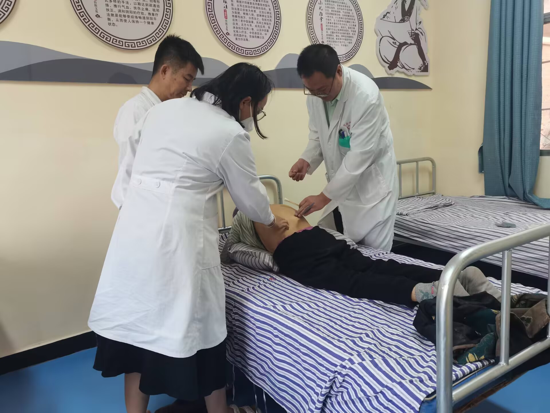 活动现场,来自县中医医院针灸推拿科、急诊科、外科、护理部等科室的 4 名专家,以及乡镇卫生院骨干医师和村医团队共 10 人组成了义诊服务队,在延伸点内有序开展义诊服务。县中医医院的医护人员还为群众提供了针灸、推拿、拔罐、刮痧等中医特色服务,让大家亲体验中医传统疗法的独特魅力。同时,针对患有慢性病和疑难病症的群众,专家团队现场开展病例讨论,制定个性化的治疗方案。