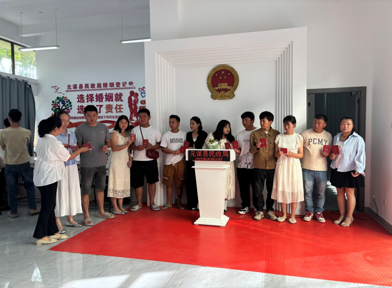 在凤凰湖公园的集体婚礼现场,新人们手持全省通办的结婚证,在碧波绿树间许下爱的誓言。这正是元谋县民政局创新打造的“公园式婚姻服务”场景:通过将颁证仪式、集体婚礼与文明婚俗宣传有机结合,既破解了“高价彩礼”等社会痛点,又让婚姻登记从“窗口事务”升级为“城市浪漫IP”。