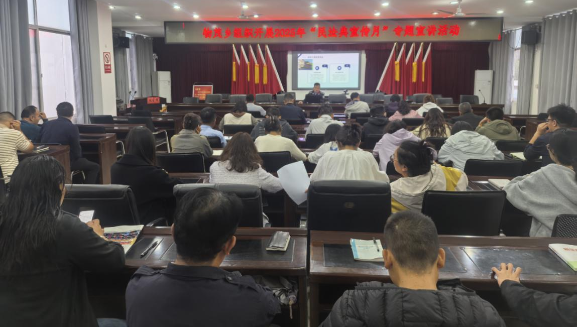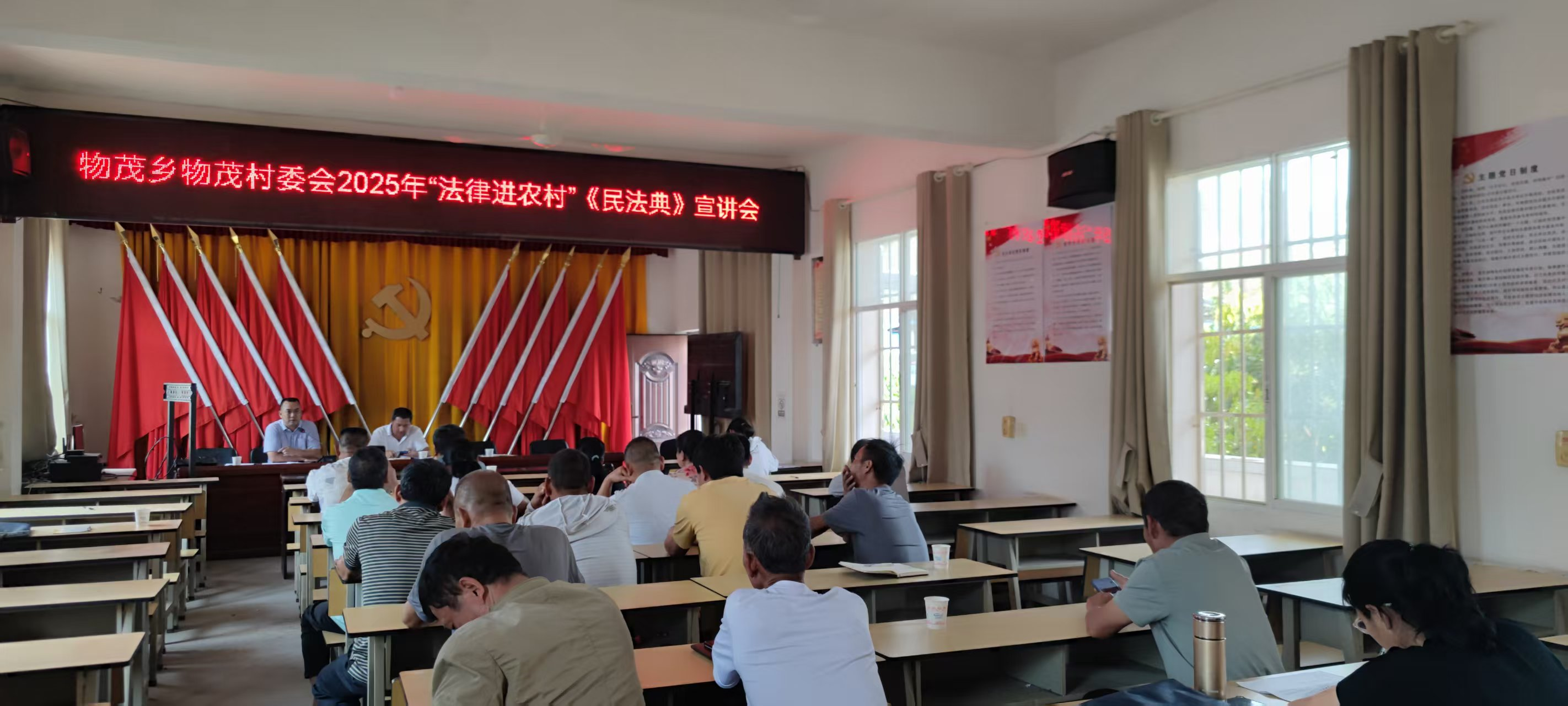 为深入贯彻落实“八五”普法规划,切实提升全民法治素养,物茂乡在2025年5月“民法典宣传月”期间,坚持“重心下沉、面向群众”的工作原则,对乡机关全体干部职工和广大农村群众开展扎实的宣讲活动。