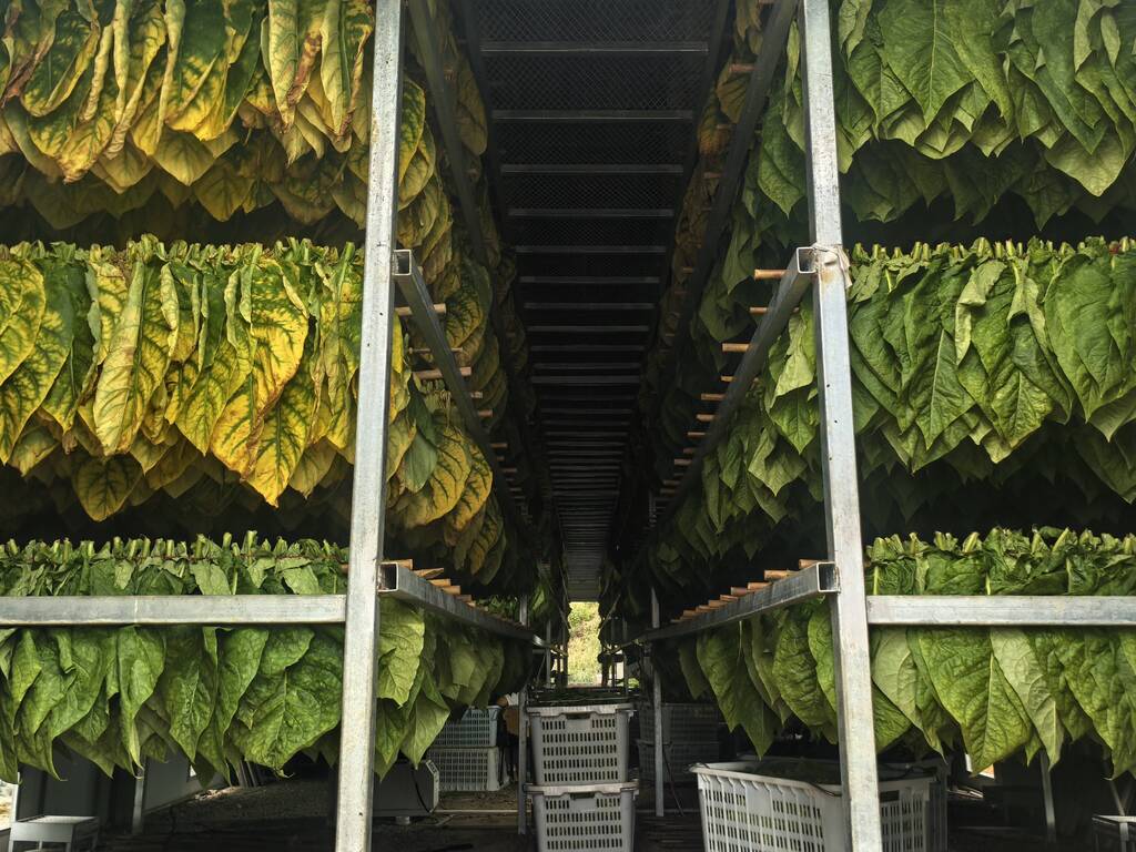 在物茂乡,雪茄烟产业早已不是“一户人家的事”。烟草公司在这里建设了12座标准晾房和10亩茄衣遮阴棚,革新使用“平墒浅沟移栽”“双层施肥法”等大田生产技术,与烟农一起探索出“茄衣吊线防倒伏”等专利技术,对晾房通风方式不断进行提升改造,有效降低霉变。通过这些提质增效的方法,鲜烟叶的优叶率显著提升,大家越种越有信心。