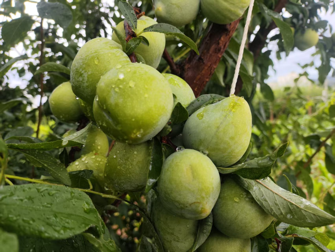 一场场雨的滋润,为新华乡的桃李园绘就了丰收的底色。漫步在果园中,沉甸甸的枝头挂满圆润的桃李,晶莹的雨滴缀在翠绿的果面上,折射出点点微光。轻拭去表皮的水珠咬上一口,清甜的汁水裹挟着自然的芬芳在口中散开,清新爽口的滋味令人对即将到来的丰收满怀期待。目前,这片果园里的桃李已陆续成熟,虽尚未开启大规模采摘,但丰收的气息已悄然弥漫。