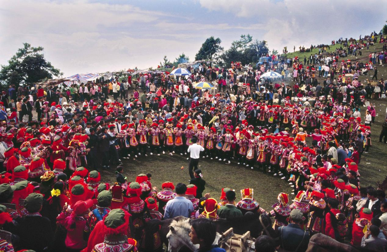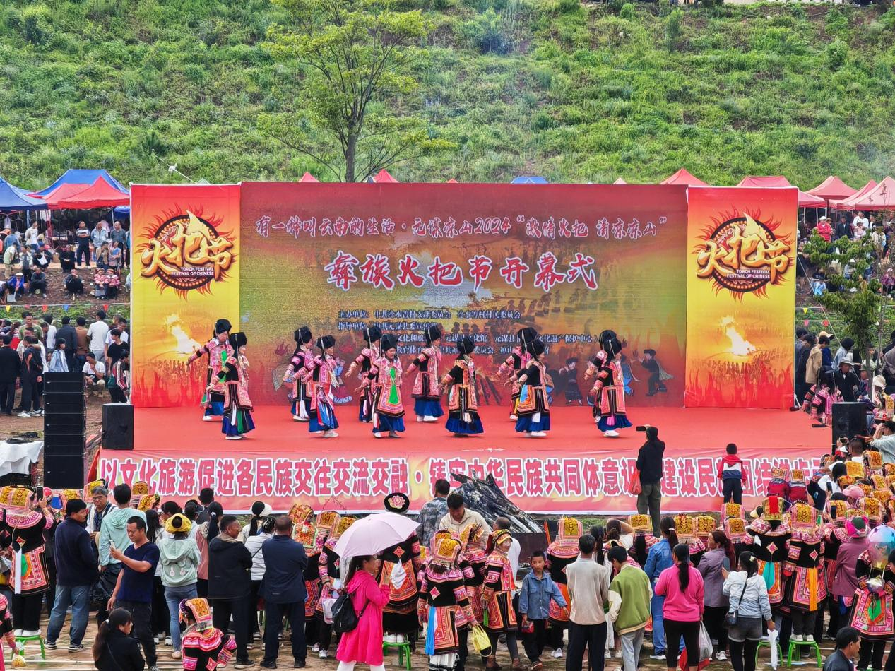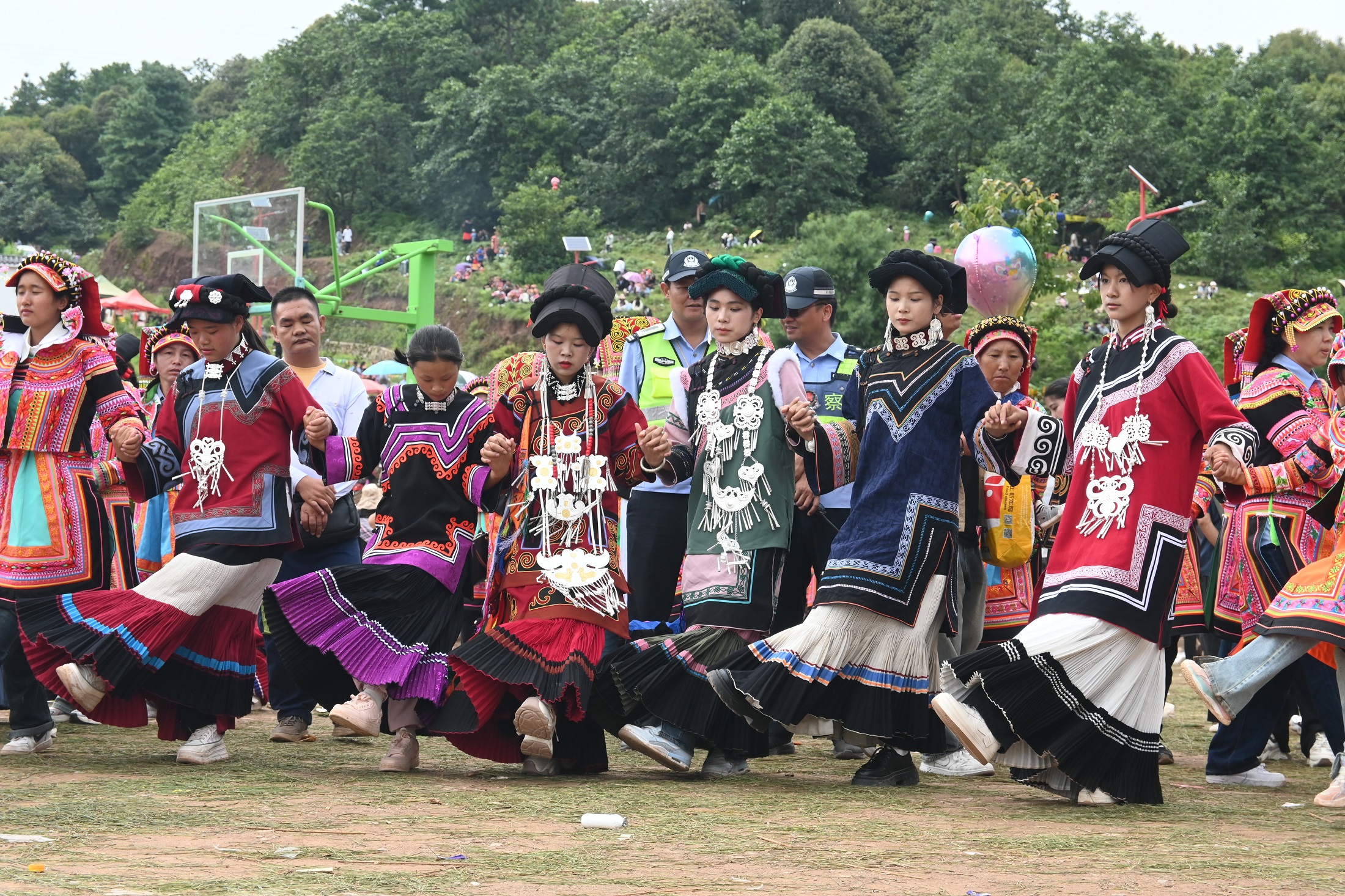 第一日·祭火神韵:毕摩祈福仪式肃穆开启,百名彝家少女跳起“朵洛荷”——手撑油伞,彩裙旋舞,宛如山野绽放的移动花园