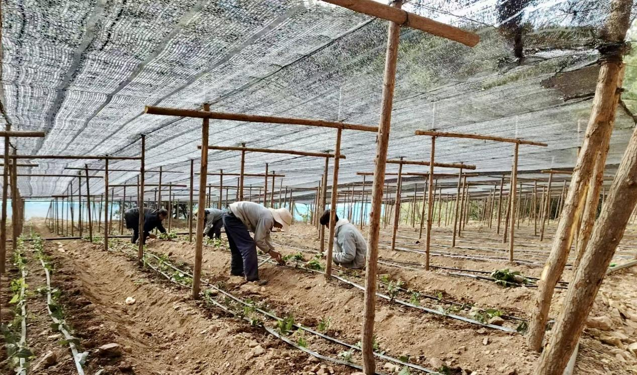 走进冷水箐村委会的中草药种植基地,大片黑色遮阳网覆盖的中药材种植地块随着山坡连绵起伏,金果榄等中药材成片生长。基地内,村里的闲散劳动力正忙碌地劳作着,熟练地将金果榄种苗进行移栽。对于村里的剩余劳动力而言,这片基地既是就业之所,更是增收之源。