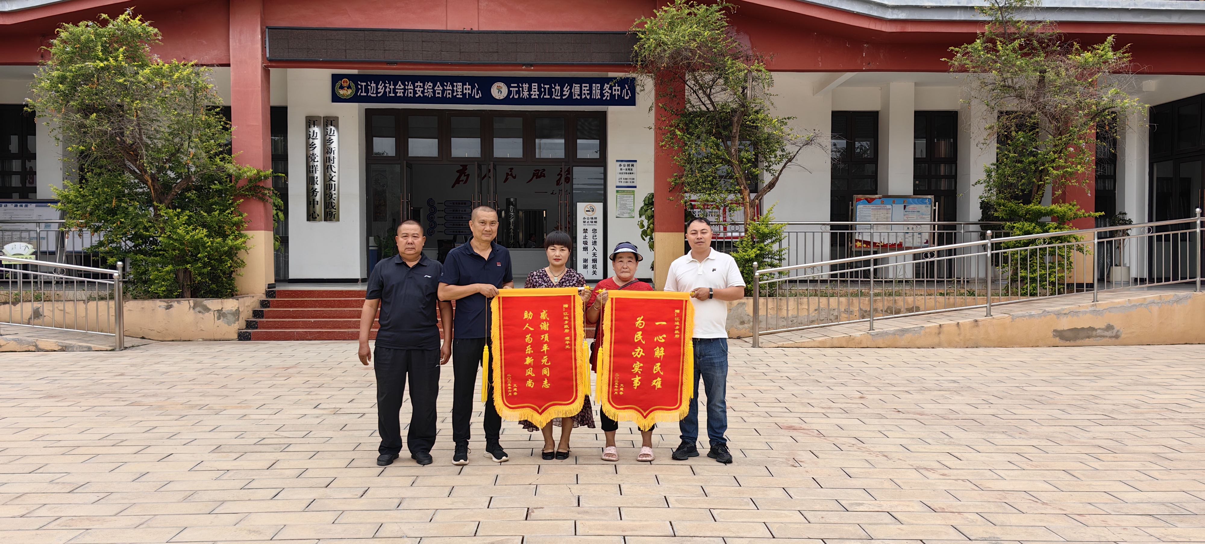 近日,江边乡遭遇强降雨天气,持续暴雨导致红色旅游路段部分发生堵塞,严重影响群众出行安全。危急时刻,江边乡党员干部冲锋在前,以项平元、张春祥为代表的基层干部迅速行动,对隐患点进行排险,全力保障人民安全。为表达感激之情,群众自发向两名同志赠送锦旗,赞誉他们“危难时刻显担当,心系百姓护安全。”