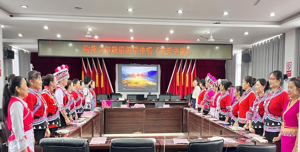 为凝聚巾帼力量,展现新时代女性风采,按照全国妇联通知各级妇联要大力推广学传唱《花开中国》的工作要求,近日,物茂乡妇联积极行动部署,在全乡各界妇女中迅速掀起了学传唱高潮,妇联干部及文艺爱好者带头传唱,以歌声凝聚巾帼力量,展现新时代女性昂扬向上的精神风貌。