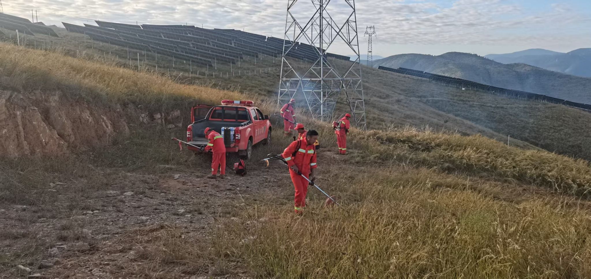 聚焦隐患整治,夯实防控基础。采取“机械+人工”“分片包干+分批次推进”模式开展专项整治。针对3处光伏项目区,按规范清理2.8公里防火隔离带,同步清除周边易燃物1000余亩;同时对7条主次道路两侧及山林周围杂草集中清理32公里,有效阻断火源扩散路径,累计出动人员300余人次、机械40余台次。