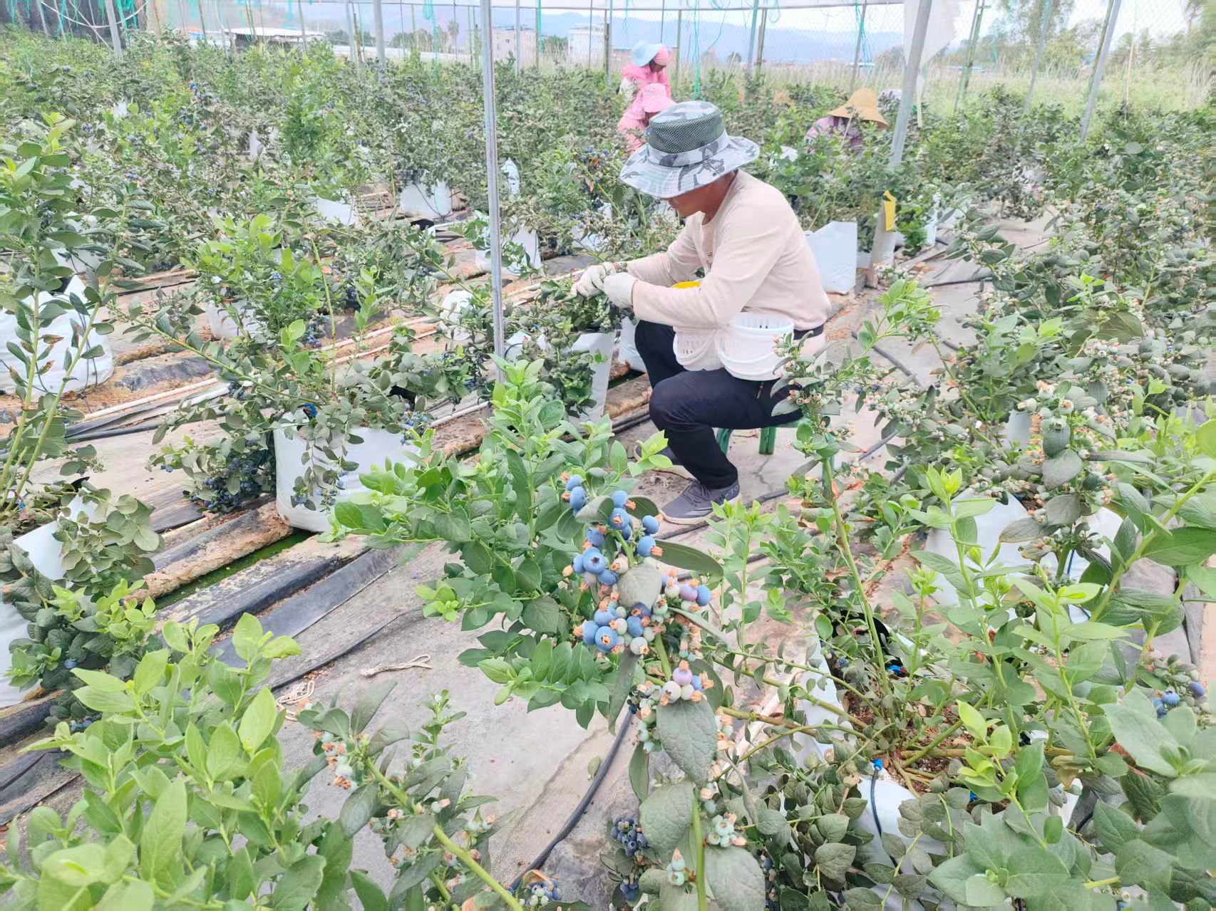 走进老城乡苴那村委会午茶村民小组恋悦蓝莓基地,紫色的果实缀满枝头,淡淡果香袭来,引人馋涎。“这一季的蓝莓果更大、更饱满,春节前一个月是价格比较好的时候,大果批发价95元每公斤,中果批发价70元每公斤,可以采摘到4月份,26亩预计总产量达25000公斤,产值达125万元。”恋悦蓝莓基地负责人赵声科介绍说。