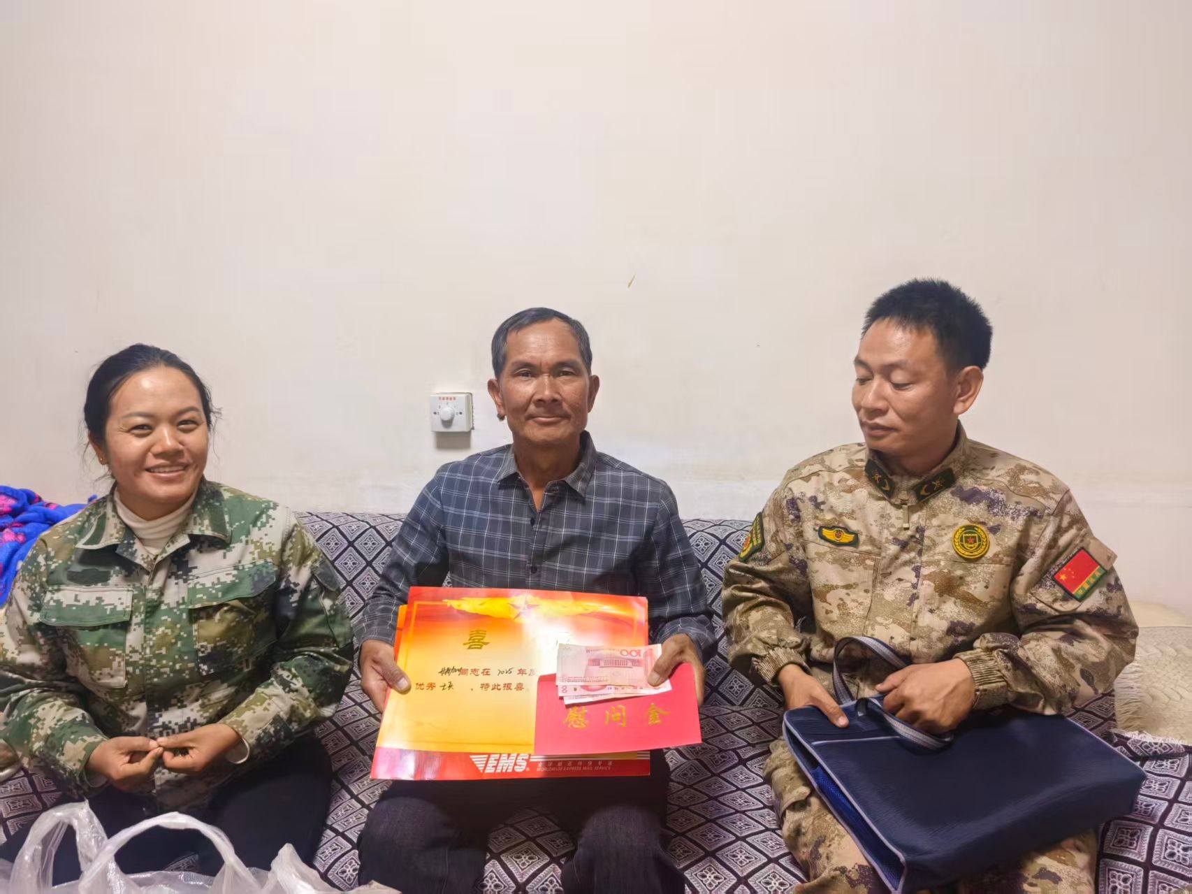 在慰问新入伍士兵家属、获评“四有”优秀军人的现役士兵家属中,慰问组为符合条件的家庭送上“光荣之家”牌匾,彰显了支持国防事业家庭的荣耀;针对“四有”军人家属,慰问组送上喜报与慰问金感谢信,感谢他们为国家和军队培养出优秀人才,并分享士兵在部队立功受奖的事迹,让军属们深切感受到这份荣誉的分量。同时,认真倾听军属们的诉求与期盼,逐一登记,以便后续做好帮扶;叮嘱他们要保重身体,继续支持好国防建设和家乡各项建设事业。