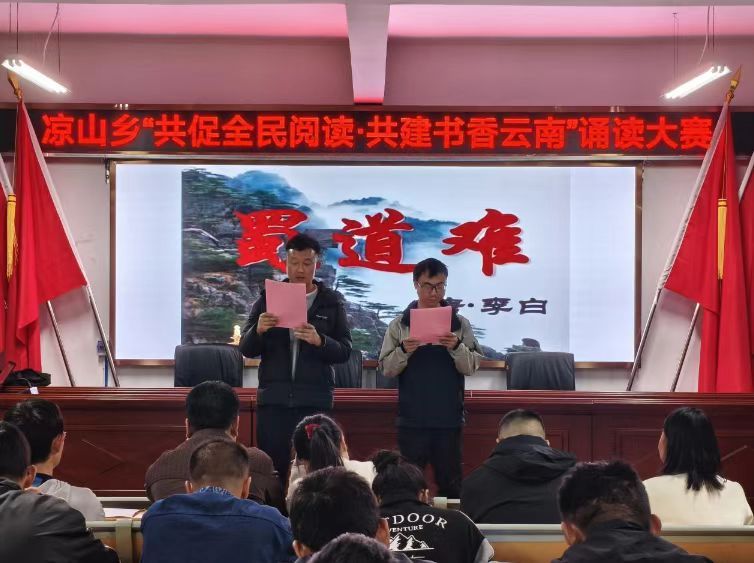 为深入贯彻《全民阅读促进条例》,弘扬中华优秀传统文化,倡导“多读书、读好书、善读书”的文明风尚,4月2日晚,凉山乡“共促全民阅读・共建书香云南”诵读大赛预赛在乡社保楼二楼会议室顺利举行。
