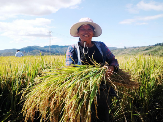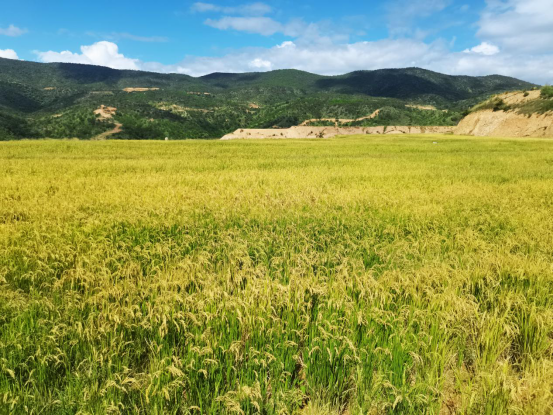 绵延山脉上,一片片金黄色的稻谷遍布山头,迎风摇曳……近日,记者来到元谋县平田乡那迪片区土地占补平衡粮食生产基地,沉甸甸的稻穗正传递丰收喜悦,喜看稻菽千重浪,一幅壮美的丰收画卷正徐徐展开。