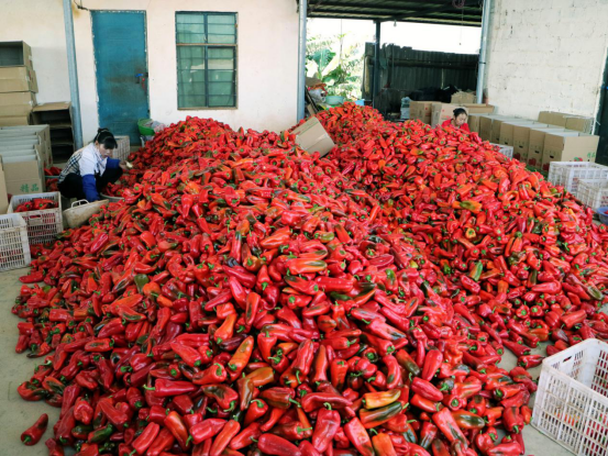 “我们基地今天种植甜椒200亩,一亩的产量在3吨左右,今年价格好,一斤能卖到十几块”基地的管理人员冉勇介绍道,“甜椒经过分拣包装后,直接销往上海、山东、浙江等地,带动当地农产品开拓了外地市场。”