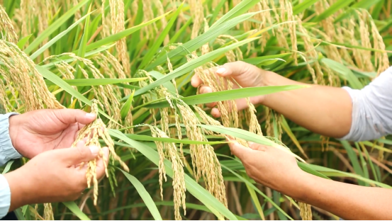 基地负责人杨树平说:“这一季稻谷熟了,又到了种黄瓜的时候,如此轮番耕种,土地就不会闲置,既能提升土地的利用率又能改善土壤环境,每亩水稻能产稻谷800多斤,为我们基地增加了一笔可观的收入。”