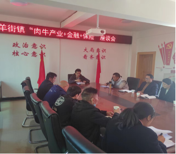 考察结束后,羊街镇人民政府镇长组织召开羊街镇“肉牛产业+金融+保险”座谈会,对标查找羊街镇在发展肉牛养殖方面存在的差距和不足。我们将以此次考察学习为契机,立足实际、拓展思路、取长补短,以思想破冰引领发展突围,以干在实处推动走在前列,立足羊街镇实际,做好示范村组和示范户的选择,金融、保险、职能所站各司其职,打造好平地、洒洒依两个养殖示范村,促进养殖户经济效益提升,助力群众增收致富。