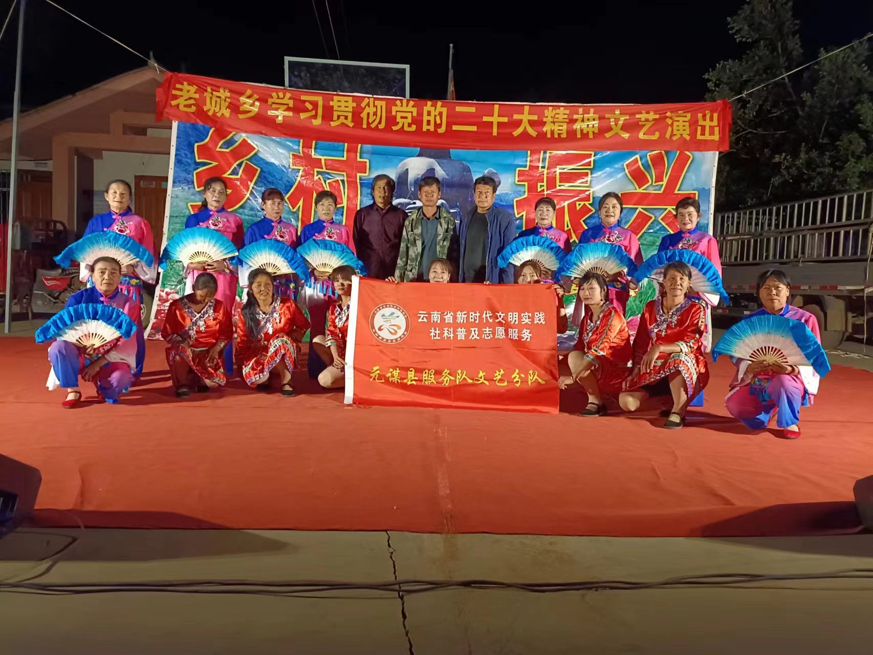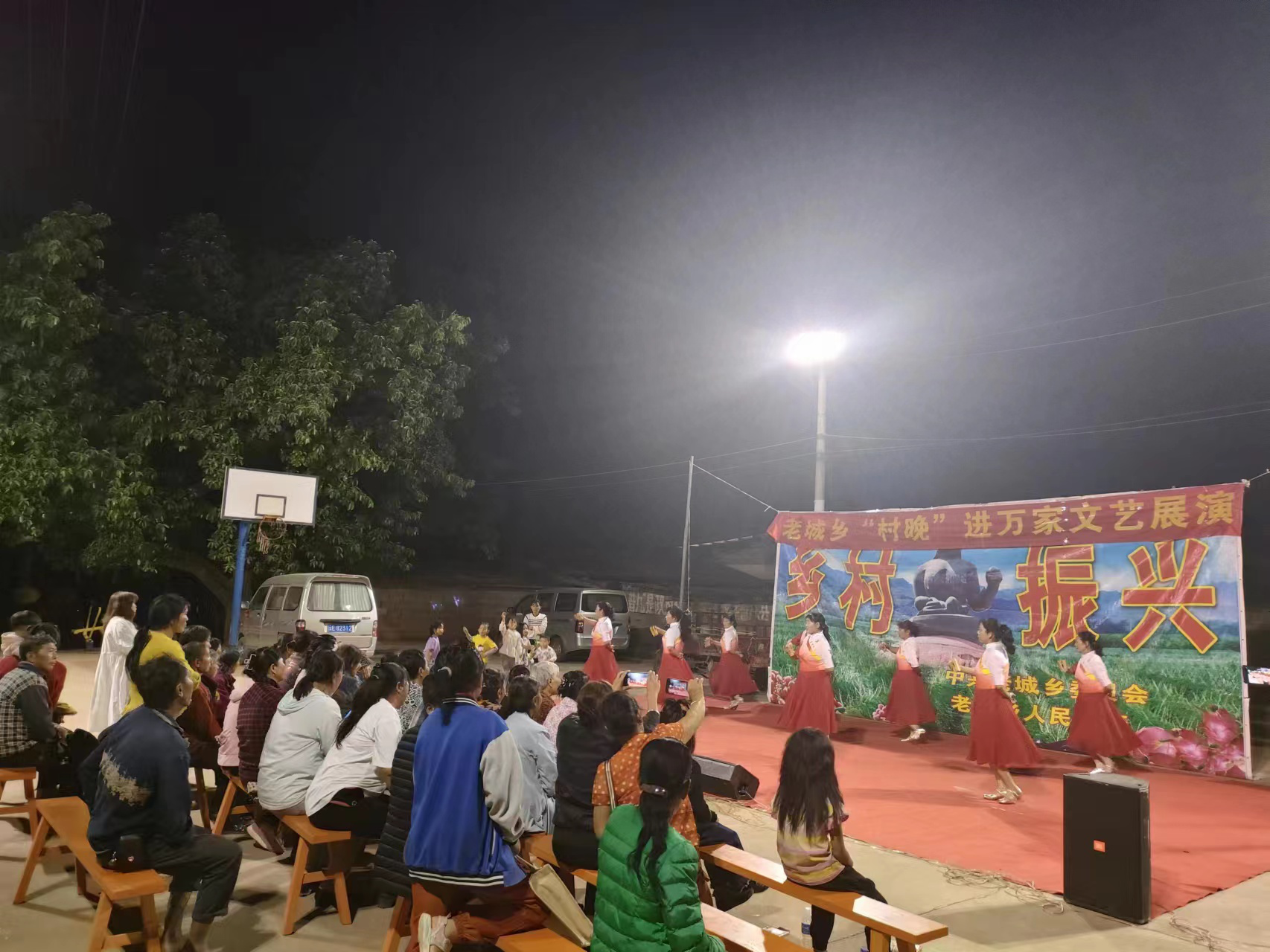 为贯彻落实党的二十大精神,弘扬主旋律,满足人民群众精神文化需求,同心共筑中国梦,建设美丽乡村,年初以来,老城乡组织本乡文艺队在10个村委会各村持续开展了百场“村晚”进万家文艺演出活动。