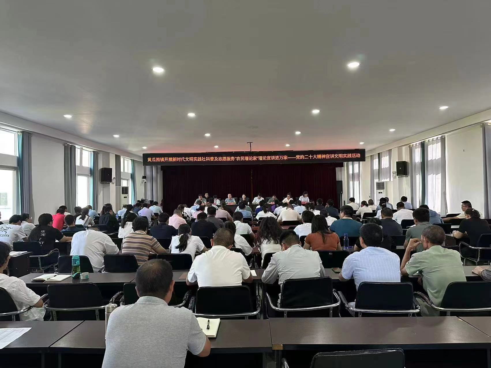 近日,黄瓜园镇开展新时代文明实践社科普及志愿服务“农民理论家”理论宣讲进万家——党的二十大精神宣讲文明实践活动,镇“农民理论家”蔡明姬将全镇当前人居环境整治重点工作融入党的二十大精神中开展了一场通俗易懂、振奋人心的理论宣讲,镇村组三级干部共计100余人参加了该次宣讲活动。