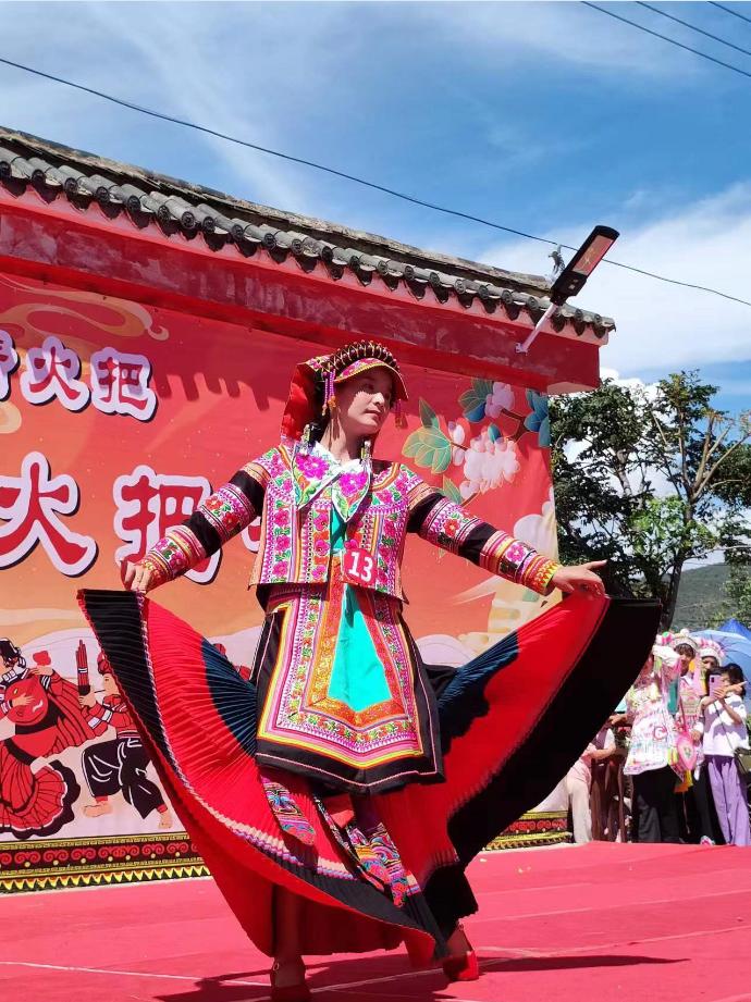 8月11日,在载歌载舞中,元谋县羊街镇2023年彝族火把节在依洒彝村举行,质朴热情的彝族儿女欢聚一堂,唱起火之欢歌、跳出火之幸福、相约火红未来。