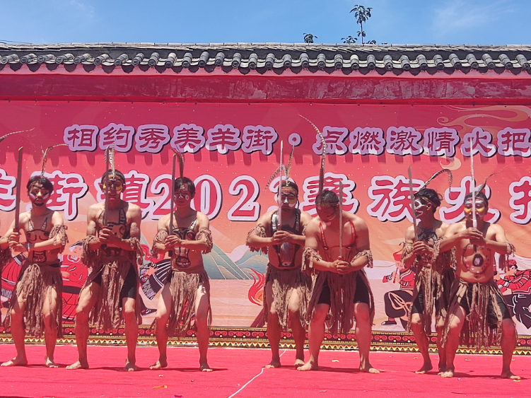 随着七月火把节歌声响起,羊街镇2023年火把节开幕式拉开帷幕,50名彝家汉子手持火把从四面八方而来,开始点火仪式,随着音乐响起,现场群众围着火把跳舞,舞姿热烈、舞步澎湃,让人感受到彝族群众对生命、自由和幸福的追求。