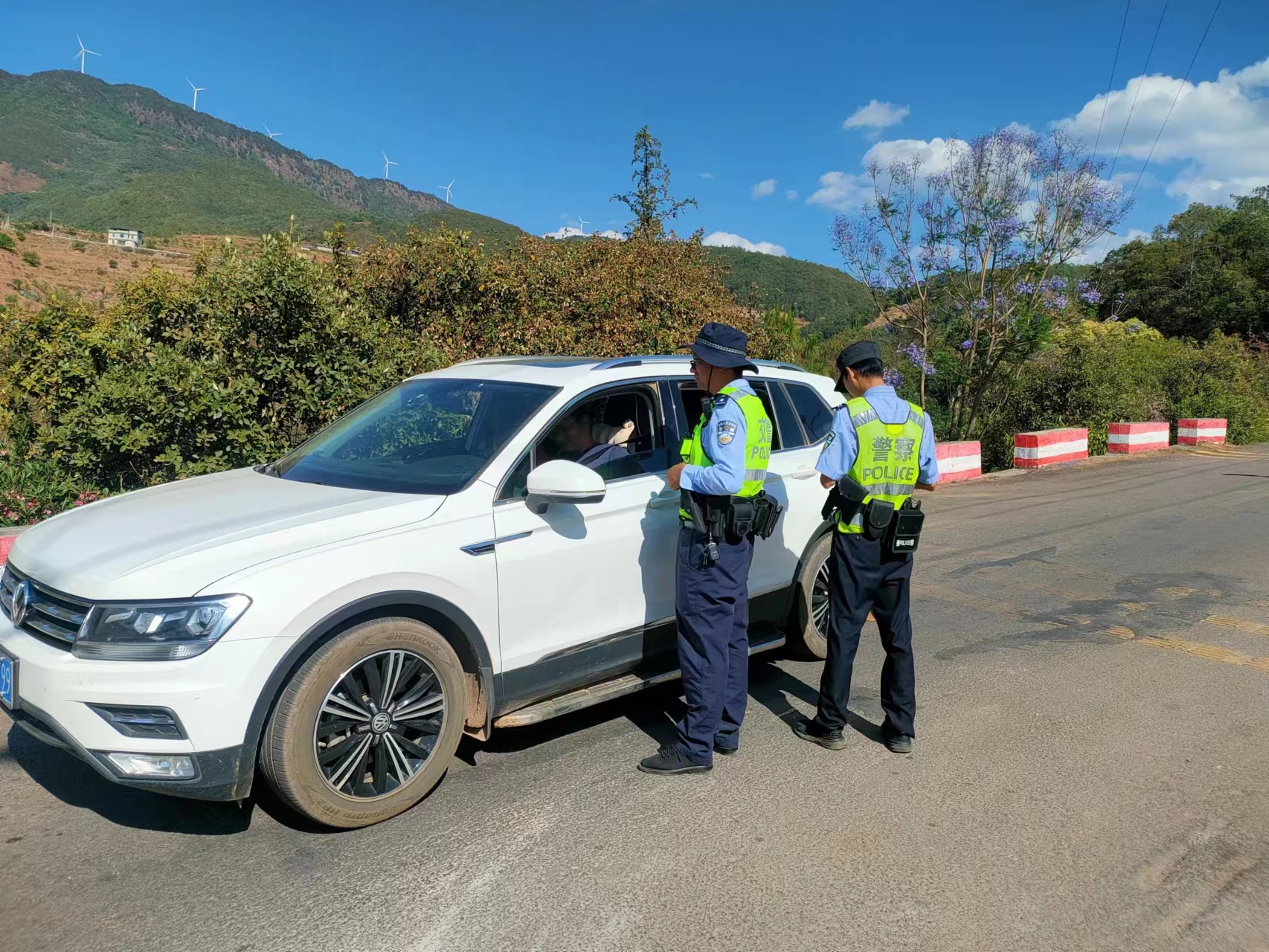 加强路面管控,严查交通违法。执勤民辅警按照“见警车,见警灯、见警察”的要求,加大对重点时段、重点路段管控力度的同时,提高路面的管事率。把酒驾醉驾、涉牌涉证、超员超载、疲劳驾驶列为重点打击的违法行为,坚决做到见违必纠,形成高压严管态势。严把出村口、出乡口,检查、劝导各类交通违法行为,全力防范农村较大以上道路交通事故的发生。