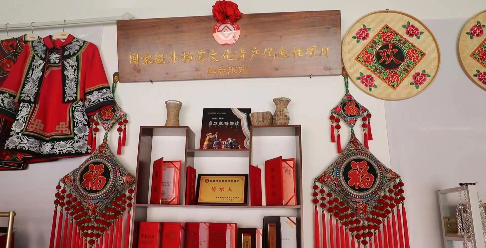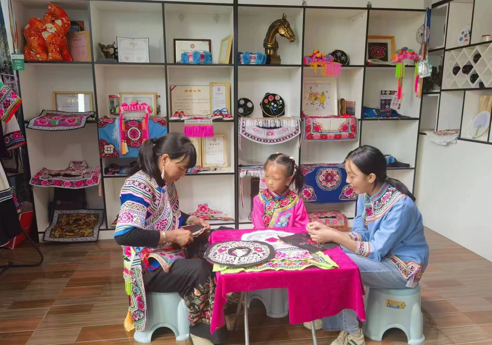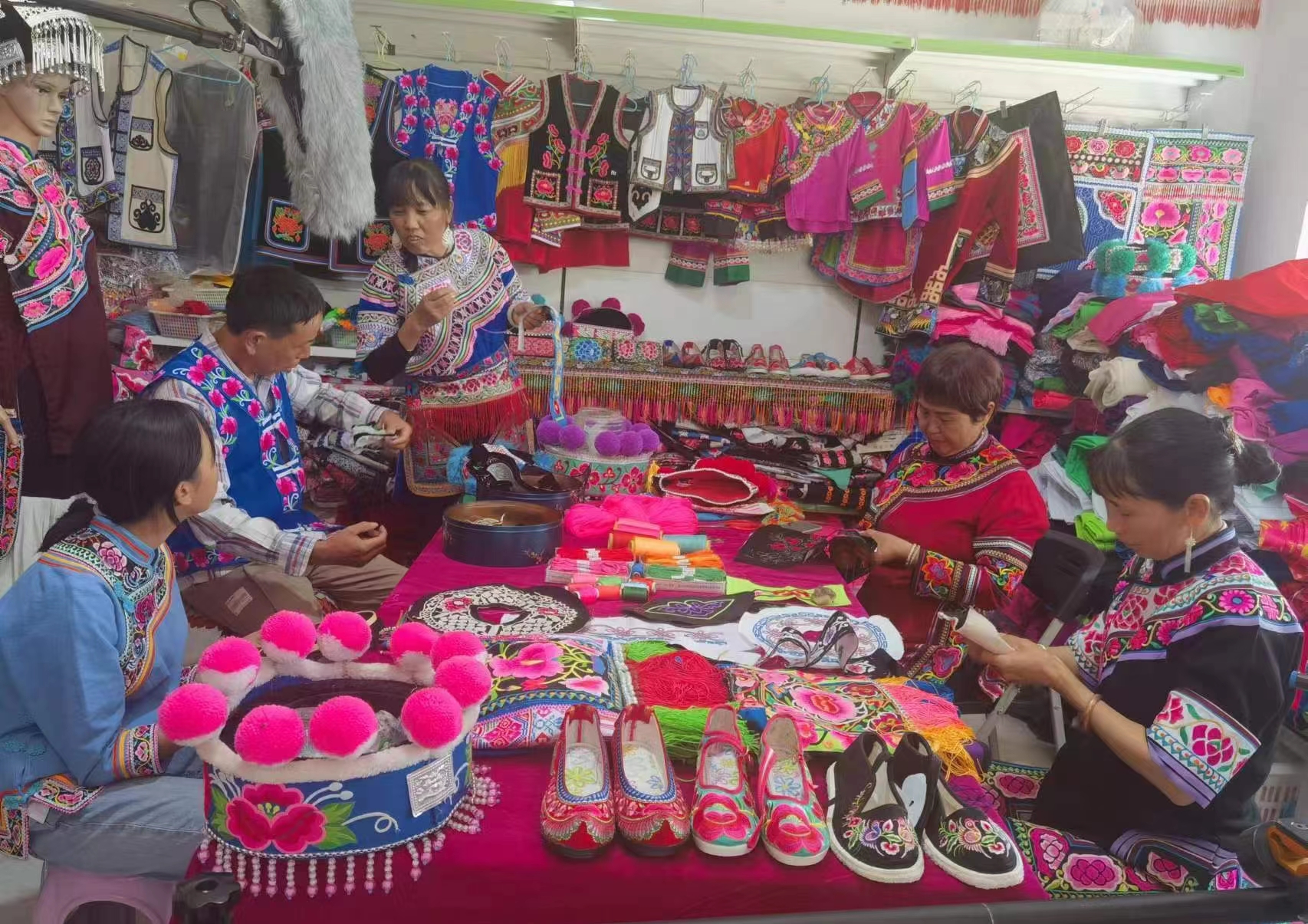 一件件精美的彝族服饰、一双双活灵活现的绣花鞋,精巧别致的挂件……在羊街镇绣品店里,摆满了各式各样色泽鲜艳、别具特色的刺绣作品。绣娘们用一团彩线、一根绣针、一方布料、一双巧手在家门口实现就业,增收致富。