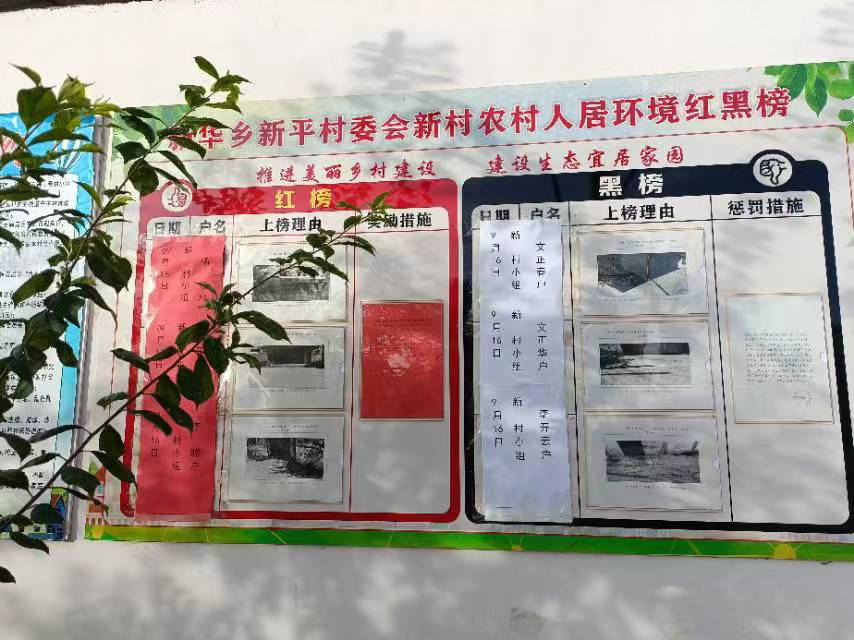 为激发群众参与人居环境综合整治的内生动力,新华乡大力实施农村人居环境整治工作成效“红黑榜”制度,常态化开展人居环境“红黑榜”通报,通过每月动态更新,以“常扫常清上‘红榜’,不争不拼上‘黑榜’”的紧迫感,提升各级干部抓好农村人居环境整治提升工作的责任意识,增强群众参与农村人居环境整治提升的自觉意识,引导群众管好房前屋后“一亩三分地”,齐心打造村庄新风貌,农村人居环境显著提升。