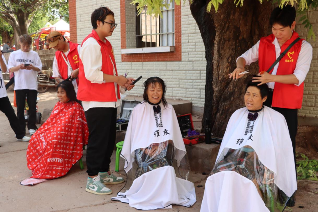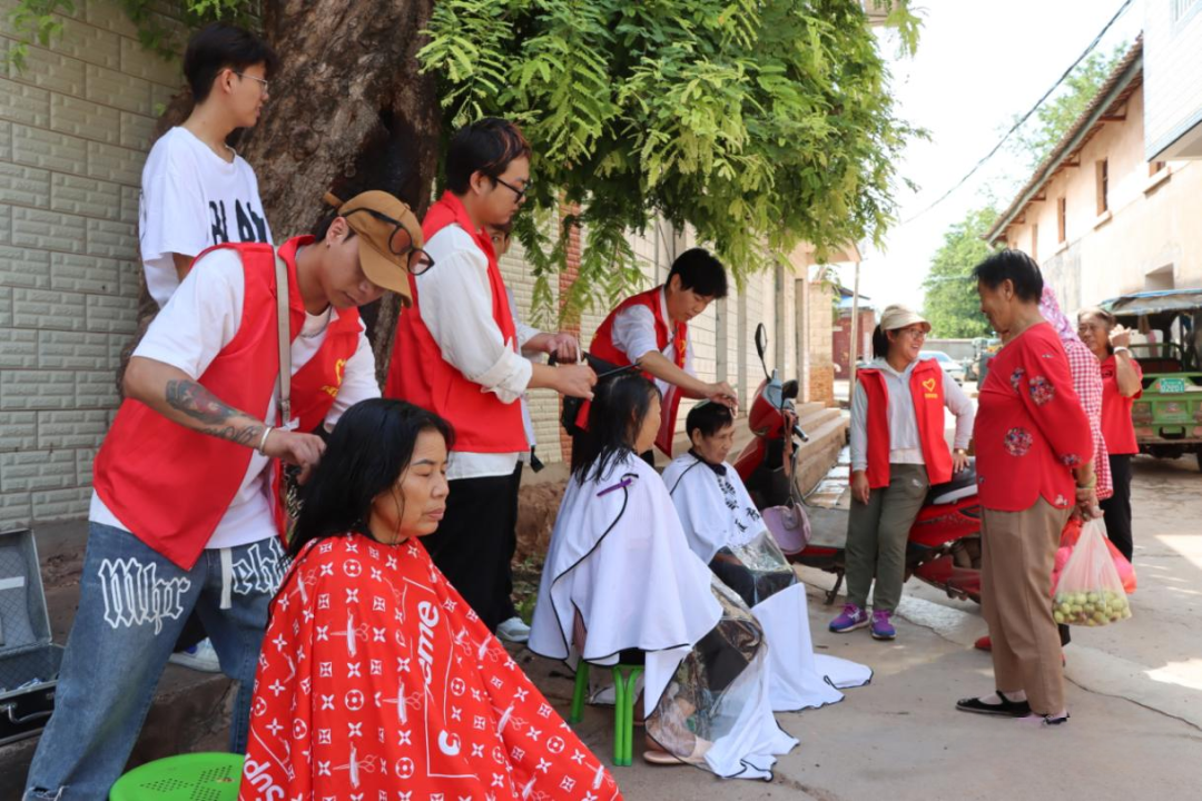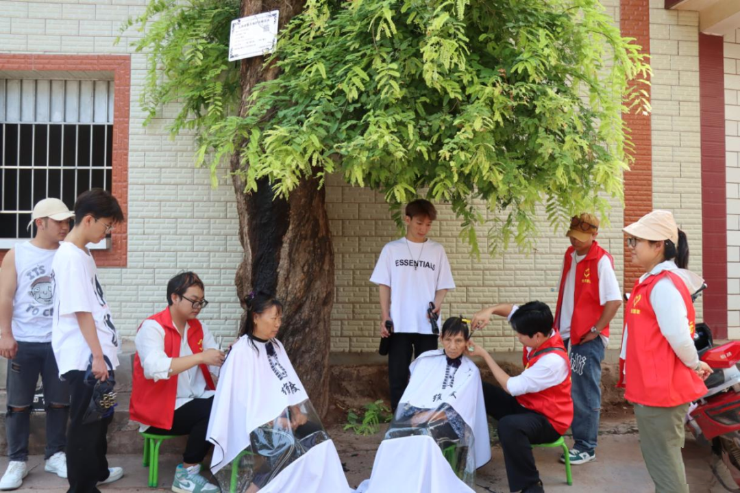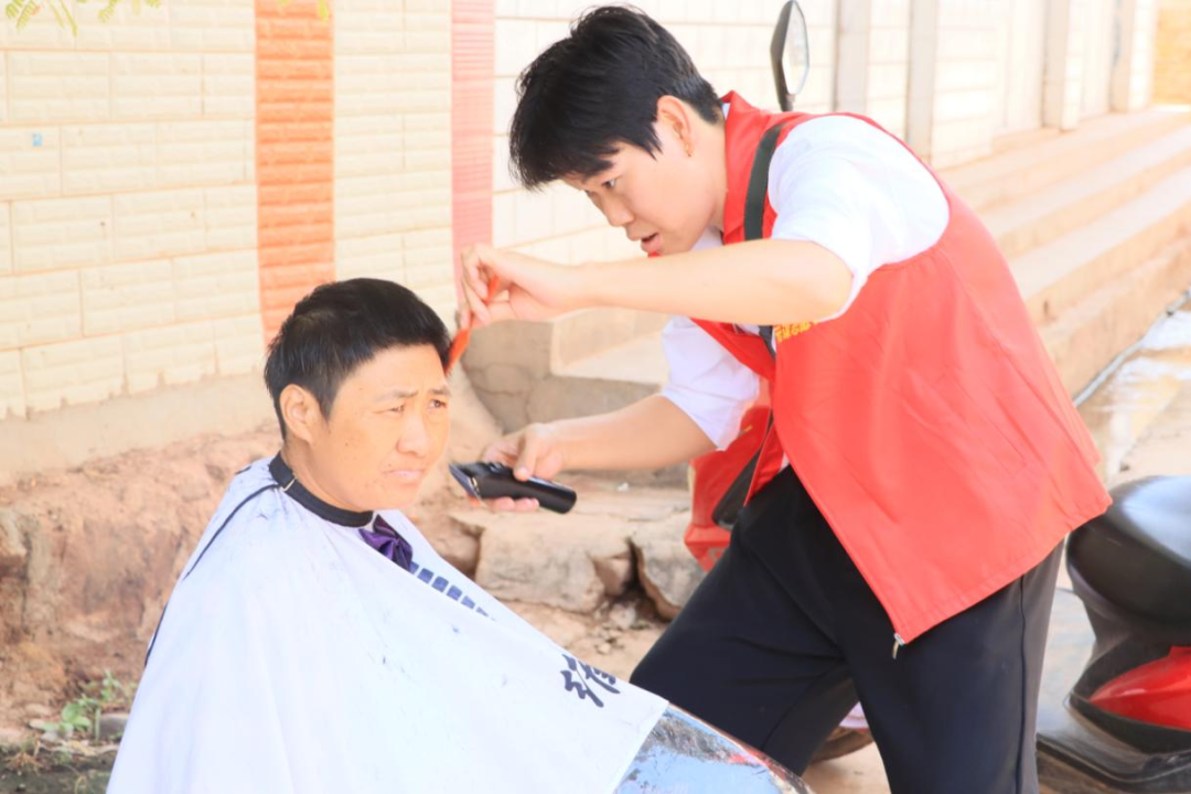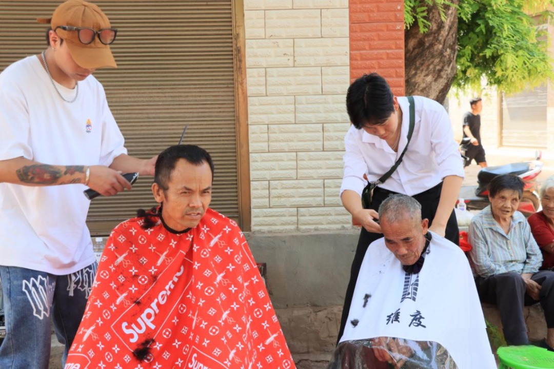 近日,在黄瓜园镇牛街村小组活动广场的林荫下,传来阵阵“嗡嗡”声,循声望去,一群年轻的理发师身影格外引人注目,他们身背剪刀包、手拿推子,专心致志地为当地村民们免费理发。