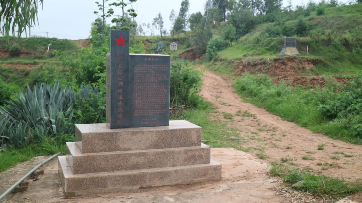 从远古的思考中走出来,我们沿108国道驱车前行,就来到了老城乡那化村白酒坡梁子。这里有红军长征白酒坡阻击战遗址纪念碑,这里是云南省文物保护单位。碑上铭记着红军在这里奋战牺牲,掩护中央红军主力部队巧渡金沙江的故事。1935年5月,中央红军长征过元谋,为诱敌于元谋,掩护主力部队从禄劝皎平渡渡过金沙江,红一军团一、二两师从武定县的石腊它兵分两路进入元谋。5月3日,二师殿后的六团三营留守白酒坡阻击尾追的滇军。红军依靠险要的地势,共打伤滇军10余人,打死4人,红军伤4人,牺牲2人,为大部队从皎平渡渡江入川争取了时间。穿越时空,我们可以想象,1935年5月白酒坡梁子上枪声阵阵,战斗激烈。白酒坡阻击战是红军长征过元谋、长征“巧渡金沙江”的重要组成部分和重要环节,红军长征过元谋是长征光辉史诗和中国共产党革命历史不可缺少的一页。