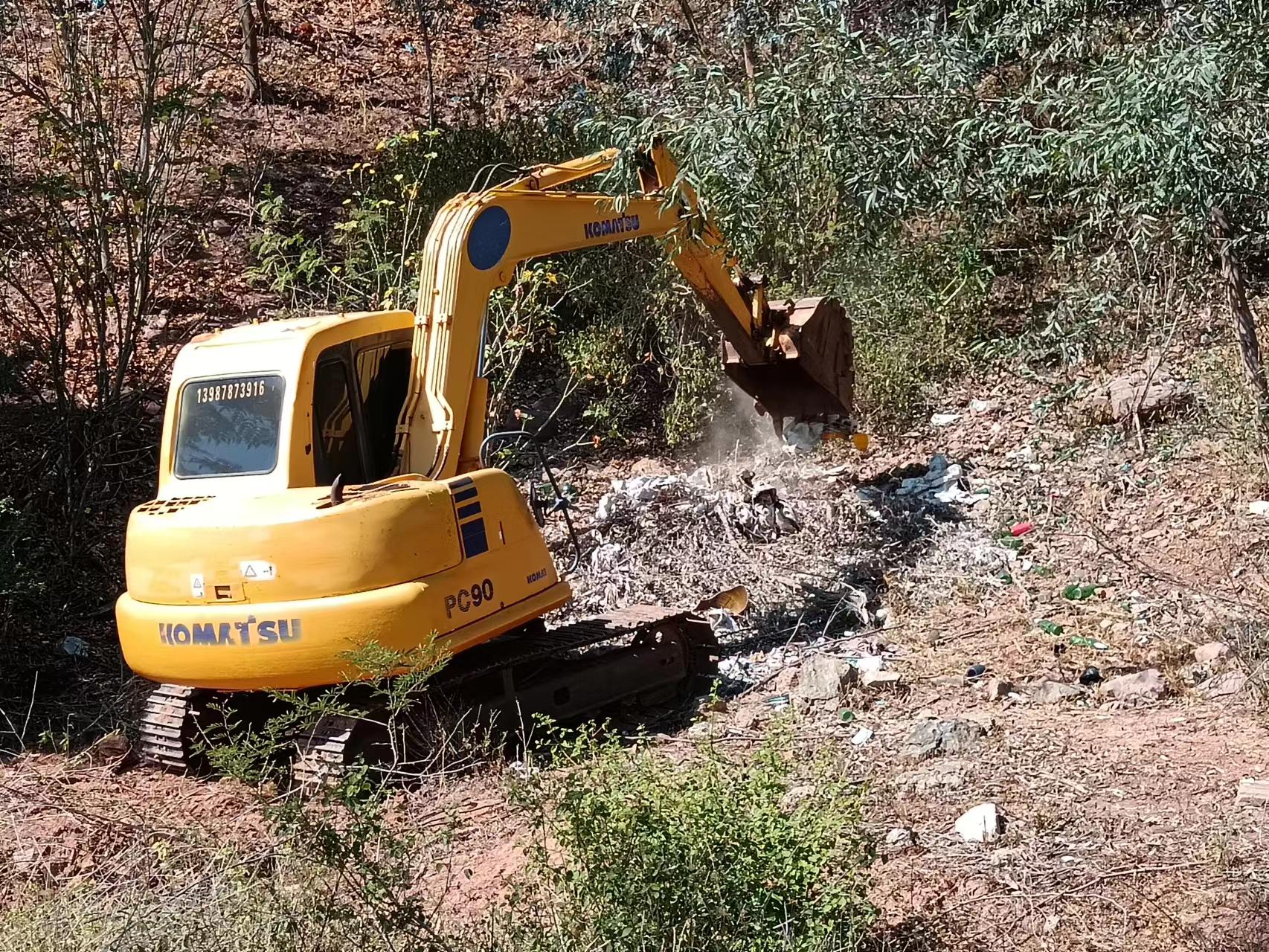 一大早,龙川江黄瓜园段沿岸两侧挖掘机、装载机、垃圾清运车来回穿梭,大家各司其职,热火朝天地进行着“清河行动”。