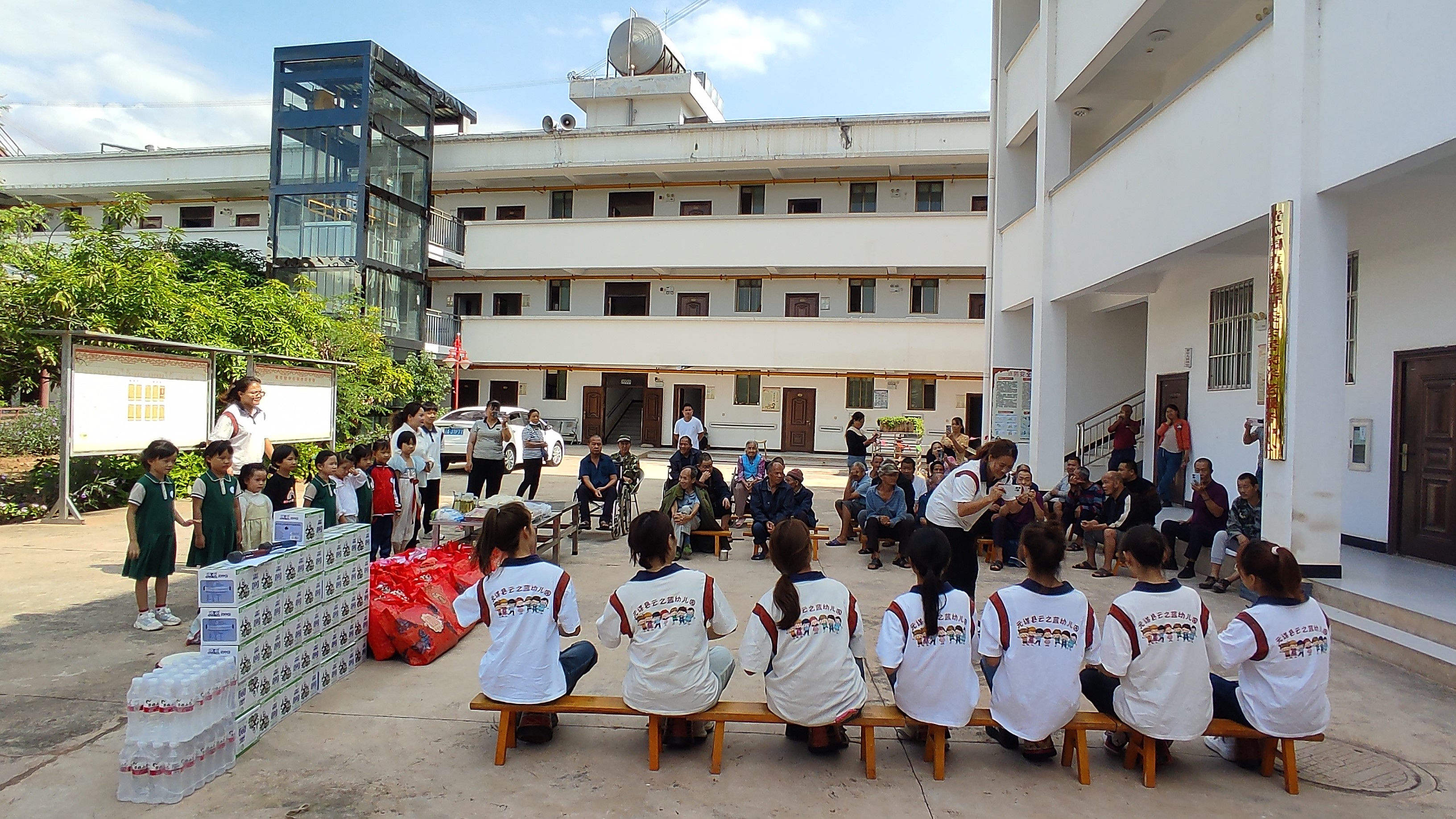 社会参与关爱老年群体。在金秋十月“敬老月”期间,先后有元谋云之蓝幼儿园、黄瓜园镇中心幼儿园、黄瓜园镇童心幼儿园、黄瓜园镇四季红文艺队、黄瓜园璀璨星光文艺队等单位到黄瓜园镇敬老院开展慰问表演,并为在院“五保”老人发放牛奶、棉被等慰问品,他们与老人促膝攀谈,聊叙家常,热心帮助其解决实际困难。一句句温暖的话语,一声声细心的嘱咐,让老人深切感受到来自社会大家庭的温暖。“看到你们,就像看着自己的孩子,你们来了,家里好热闹。”老人们情不自禁地说,极大地丰富了敬老院“五保”老人的精神文化生活。