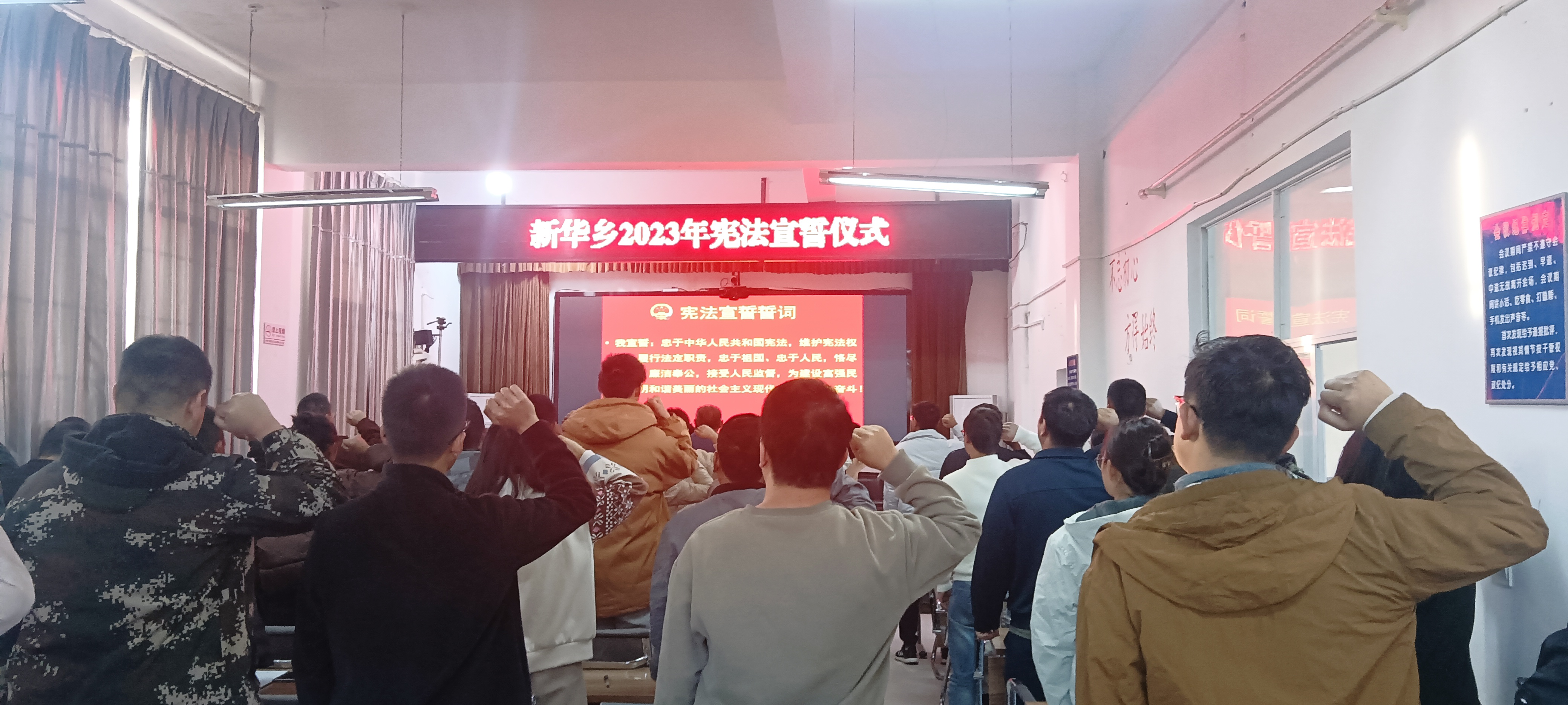 12月4日上午,新华乡举行宪法宣誓活动,乡党委书记领誓,全体干部职工、驻村队员、村四职干部60余人参加宣誓活动。