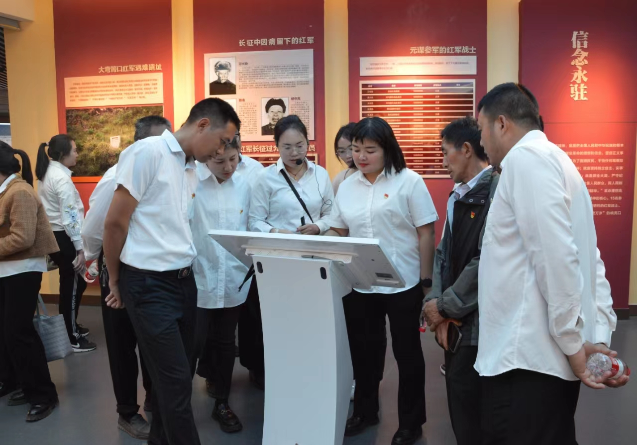 在红军纪念馆内,跟随着讲解员的脚步,全体党员通过图片文字、历史资料、文物展陈等,重温了中国工农红军波澜壮阔的长征历程,一同追忆那段艰苦卓绝的峥嵘岁月,感悟革命先辈们为民族独立和人民解放事业抛头颅、洒热血的革命精神。面对鲜红党旗,全体党员紧握右拳,重温入党誓词,庄严宣誓。