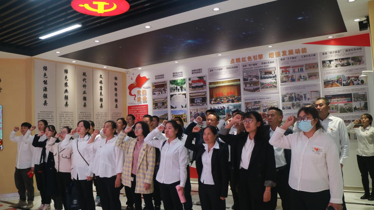 红色光辉照耀成长,牢记使命担当。“我志愿加入中国共产党,拥护党的纲领,遵守党的章程,履行党员义务.......”在各位党员铿锵有力的宣誓声中结束了党群教育中心的参观,展厅主要从信仰之光到展望未来几大篇章,一步一个脚印深刻诠释了中共一大到二十大的风云淬变,特别是南京大屠杀的历史刻画令人深省,振聋发聩,引导全体党员干部铭记这段屈辱残酷的历史,“落后就要挨打”,要团结奋进,为实现中华民族伟大复兴而不懈奋斗。同时,通过瞻仰一个个革命先烈的先进事迹,党员干部更加坚定理想信念。展厅中老城乡老党员杨正泰三次缴纳大额党费的事迹,在展厅里熠熠生辉,身边榜样的事迹同样激励着老城的党员干部不忘初心,不辱使命。
