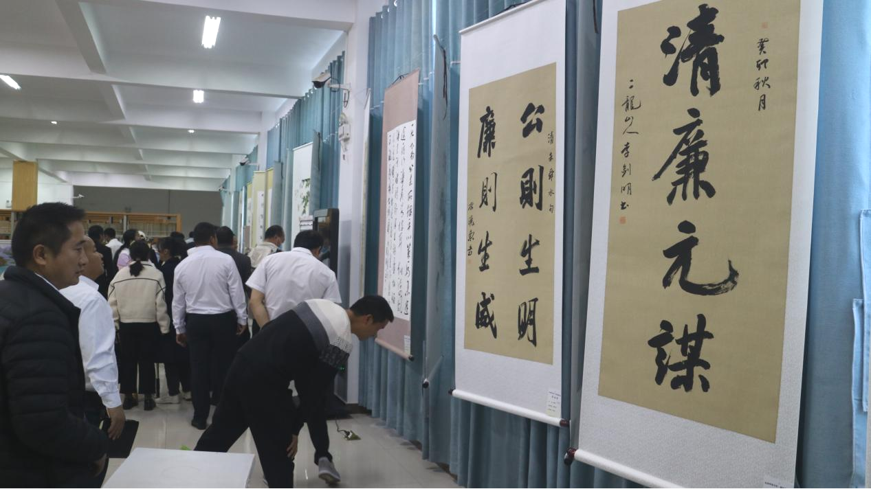 廉洁书画鞭辟入里,清廉之风悄然而至。第一站前往县图书馆“弘扬传统文化,建设清廉元谋”主题书画展厅,现场讲解员对代表性书画进行了精心讲解,集体参观了代表性作品后,党员干部自行参观。一幅幅作品构思精巧、深入人心,取材丰富发人深省,此次书画展聚焦“清廉”这一底色,在丹青流彩的写意中,生动诠释了“做一名清廉干部”之美,通过“听说看”进一步强化了党员党性修养,筑牢知廉、反腐的思想防线。