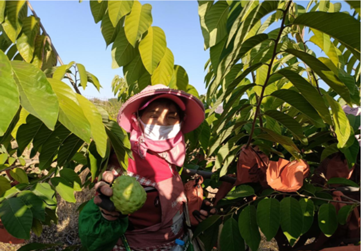 做强特色高端水果。依托土地、气候等自然优势,以芝麻万亩、虎溪千亩“凤梨释迦基地”为示范,带动群众发展种植凤梨释迦、牛油果、小枣等热区特色高端水果1.3万亩,带动农民增收。在物茂乡金龙果蔬凤梨释迦种植基地,村民杨兴如正在忙碌地采收释迦果。她说,这片山坡以前种植品种杂乱无章,收成也很不理想。自从全部包出去改种凤梨释迦,收成一年比一年好,也为附近不方便出远门的群众提供了便利的务工机会。