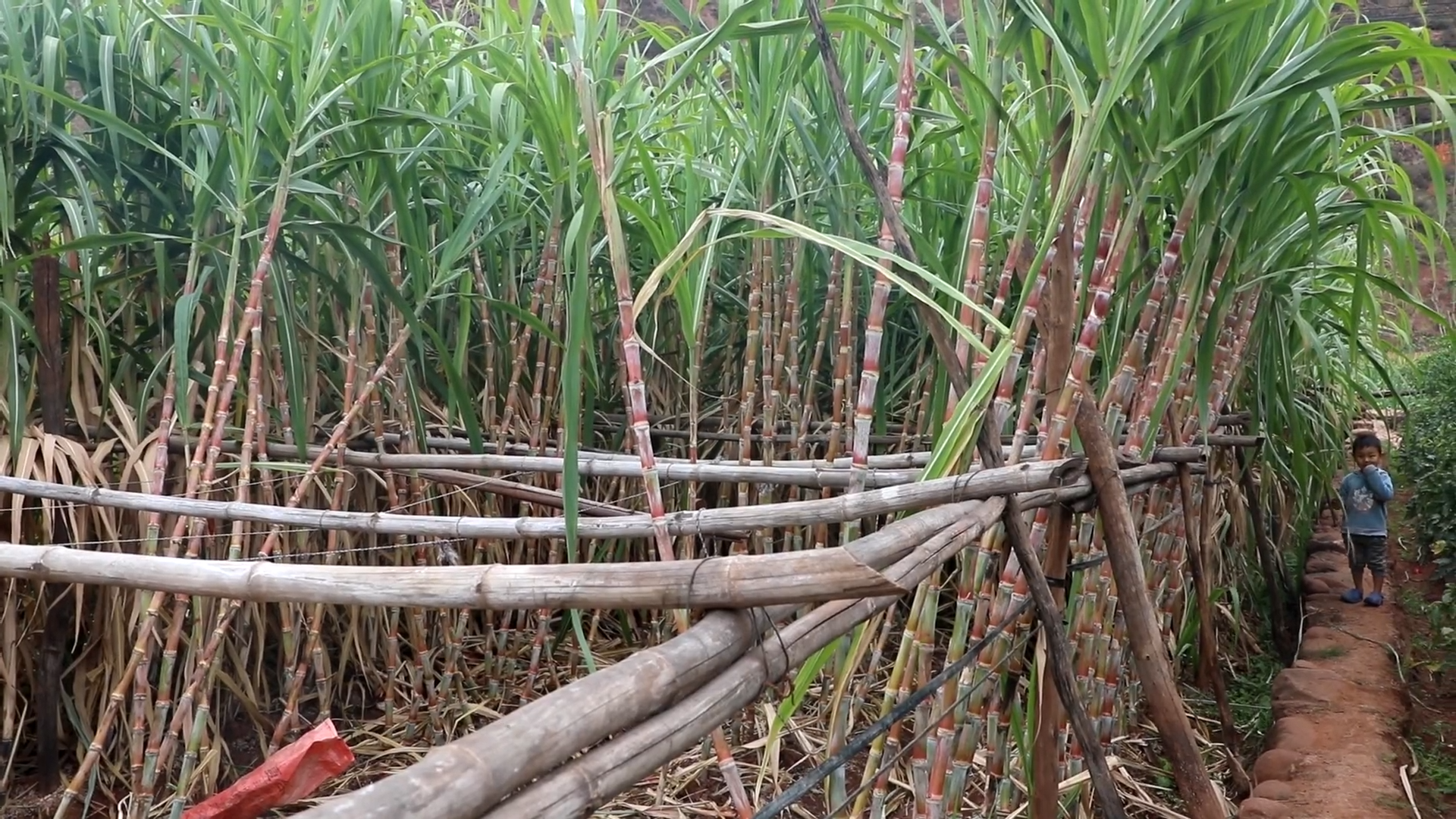 种植户文位齐手拿砍刀,熟练地将甘蔗砍倒,再把头尾稍作修剪,一棵甘蔗就处理干净。文位齐说:“我家这一亩甘蔗能产五吨,我们凹鲊的甘蔗又甜又脆,拉到市场上很好卖,能卖四块多一公斤。”