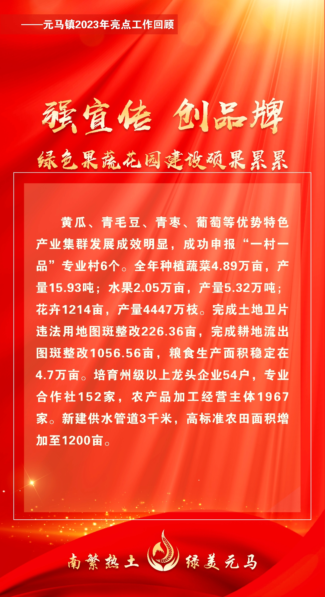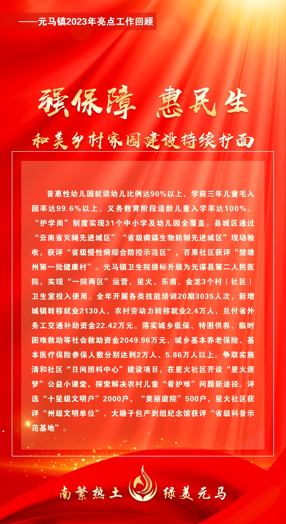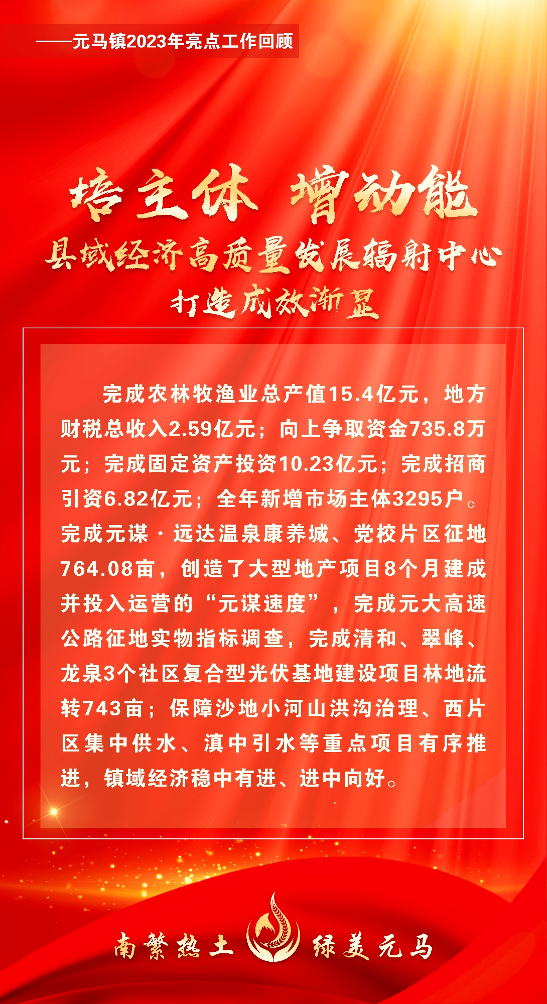 新的一年,元马镇将持续以习近平新时代中国特色社会主义思想为指导,深学笃用党的二十大精神,聚焦落实省委“3815”战略发展目标、州委推动高质量发展系列部署,以及全县打造“五个强县”擦亮“四张名片”发展目标,围绕全镇“一中心两镇四园”经济社会发展思路,从“六个着力”发力,通过经济发展、培强产业、谋划项目、推进乡村振兴、改善民生、守牢安全底线,全面加强政府自身建设,躬耕实干、奋发有为,全力推进全镇经济社会高质量发展,打响“南繁热土、绿美元马”外宣品牌。