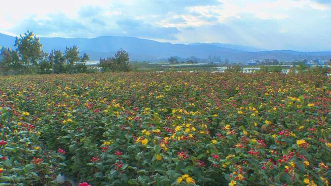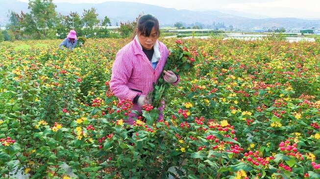在那能村的火龙珠鲜花种植基地,放眼望去,一片片火龙珠错落有致,长势喜人。据种植户余翠兰介绍,当下正是火龙珠采收的时节,鲜花摘下后就直接送往昆明斗南花卉市场,价格好的时候可以卖到三十多元一束。“我们家种了六年,可以收两季,这一季采了之后,它立马又从根角发芽,你管理着,到3月份又上市了,清芽的时候比较麻烦,每天都有5、6个工人在这。”花卉种植户余翠兰告诉记者。