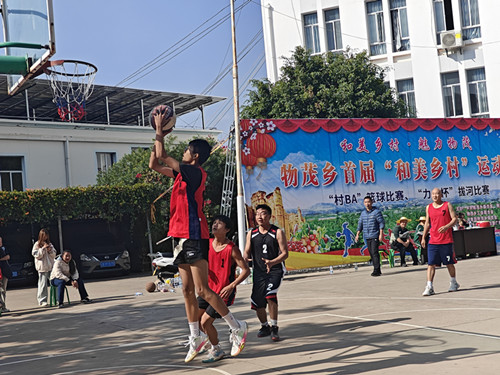 物茂乡为丰富群众文化生活,推进全民健身运动,弘扬中华优秀传统文化,营造文明健康、喜庆祥和的节日氛围,铸牢中华民族共同体意识,近日,举行了物茂乡首届喜迎新春“和美乡村”运动会,“村BA”篮球比赛,参赛者们展现出团结进取、蓬勃向上的精神风貌,赛出水平、赛出风格、赛出友谊、赛出团结。