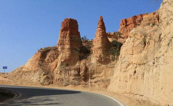 平田土林又叫班果土林,也就是伟大地理学家徐霞客笔下的土林。平田土林海拔1150米,面积14平方千米,由数百年风雕雨蚀形成,土柱众多,如林伫立。土林间有条大沙河,河两旁分布着一条条横向延伸的支流冲沟,每条冲沟都似迷宫,似走入“艺术走廊”,姿态万千的土柱峰林密密匝匝、数不胜数,令人目不暇接。镶嵌在上面的雨花石、云母、硅化石,如玛瑙、金银般在阳光下闪闪发光,五光十色。这片土林兼具物茂土林的厚重感与浪巴铺土林的奇幻感,是很值得欣赏的景观。