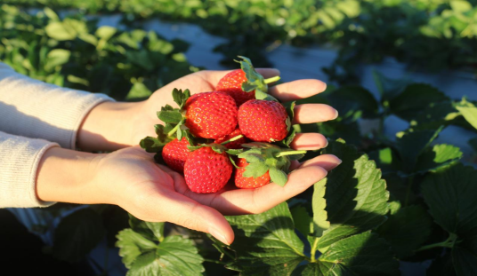 走进大田山,银白色的地膜上满是绿油油的叶子,搭配上一个个鲜红的草莓,甚是讨人喜爱,令人垂涎欲滴。8月份种下的草莓,10月中旬就可以采摘,一直可以采摘到明年4月。这里的早冬草莓色泽鲜艳、口感香甜,亲手采摘草莓,感受田园乐趣,为新春增添一抹绿色。立春后的草莓熬过了腊月的寒冬,暖阳的温热与初春的微寒相遇,发酵出草莓特有的甘甜味,对的时间就等待你的出现,时间刚好,味道纯正,你不心动吗?