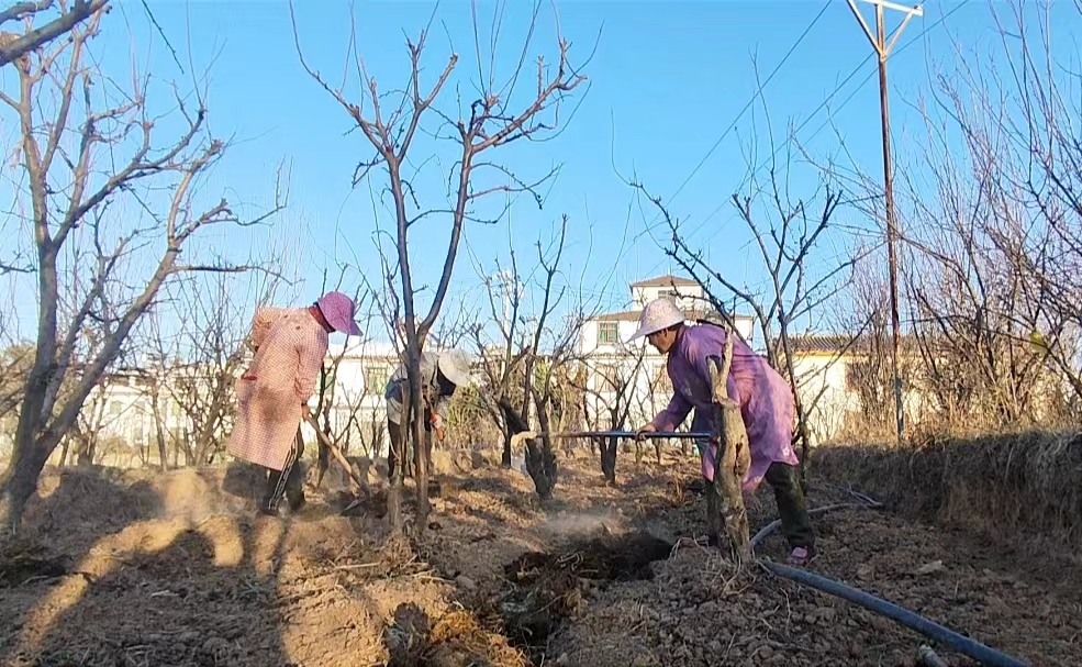 在新华乡平地村的桃李地里,果农们正在对果树进行修剪、除草、施肥、灌水等工作。“我家的桃李,修枝工作已经全部完成了,现在正在清理地里的树叶和杂草、浇水、追肥,现在是桃李管护的关键时期,给果树施底肥,让果树‘吸收’好,才能有个好收成。”村民李大哥说。