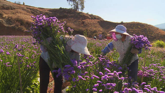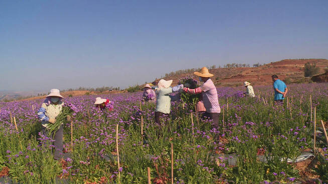 老城乡朱家村鲜花种植基地负责人李如超告诉记者:“鲜花产量还可以,每一亩种得好的话,产量能达到3吨到3吨半左右,我们的销售渠道主要是用电商、拼多多、淘宝这个系列在销售,就是分把扎出,这两天的价格赶上三八节还可以,种植面积70亩左右,这两天的工人每天大概15个左右。”