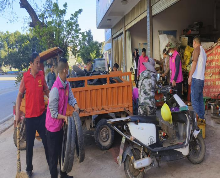 瞄准工作重点。由主要领导带队,聚焦“路边、河边、沟边、村边、屋边、背街小巷”等薄弱环节,一批志愿者从主干道两侧乱堆乱放开始清理,清理道路沿线、乡内主次干道、商铺周边乱堆乱放的杂物,协助沿街出店经营商户将堆放占道物品搬进店内,引导店铺文明经营、规范停车,积极落实门前三包责任制;一批志愿者则手拿扫把、铲子,清扫道路散落垃圾,铲除杂草杂物,形成“地毯式”清理,不留死角,彻底清除可视范围内垃圾,同时督促商铺、饭店做好各自所属区域环境卫生工作。
