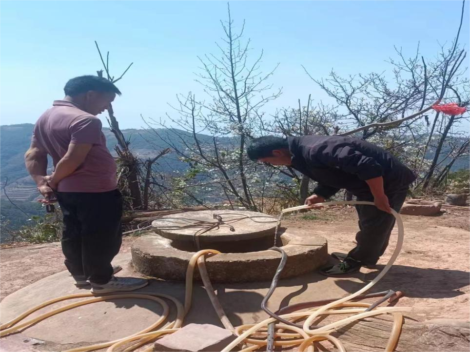 亮身份,密切联系群众。凉山乡人大主席团践行全过程人民民主的鲜活元素,代表们通过群众会和入户宣传等形式,与群众共同商讨抗旱应急好办法、好点子,及时向村民通报旱情、抗旱应急工程项目进度,指导群众进行抗旱自救。动员群众积极行动起来,坚持“先人饮、后生产,先地表、后地下”的原则,充分挖掘利用周边水源,保障人民基本生产生活用水,帮助群众解决实际困难和问题。目前投资230万元的那迪光伏提水项目已经投入使用,每天可从挨小河提水150立方米,可保障那迪村委会6个村民小组群众生活生产用水。