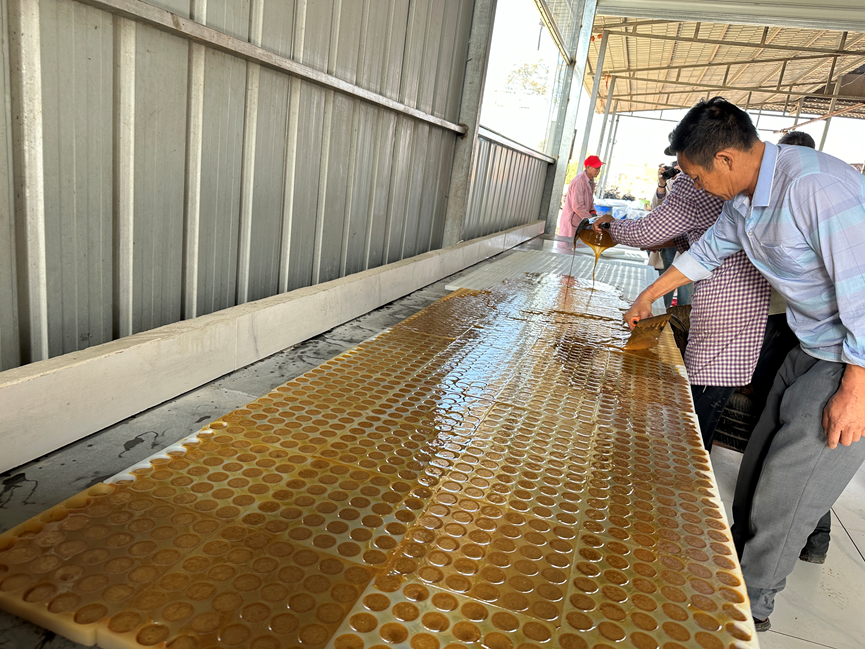 红糖做“特”。物茂乡古法手工红糖,采用特色各异的模具进行定型制作。款式多样,造型别致,无论是煮红糖鸡蛋还是冲泡牛奶,一次一小块,方便又省力,既解决了大块红糖取用不便的困扰,又实现了红糖食用量的直观表达。