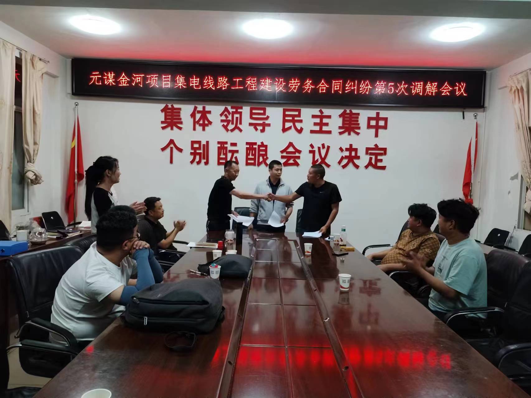 2024年4月,姜驿乡人民政府收到元谋县信访局关于因元谋金河项目集电线路工程建设劳务合同纠纷引发施工单位到京上访的事项后,实行挂图作战、对症施策,经过历时5天的6次调解,最终双方就500余万元的结算总价达成一致,当场签订调解协议书,推动问题实质性解决。