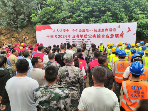 6月28日上午,在平田乡华竹村委会勐岗河车良地河段模拟因受暴雨天气的影响,致使车良地河段水位上涨较快,可能出现塌方或泥石流,导致沿岸群众受到洪水泥石流威胁。平田乡政府立即启动《平田乡突发山洪灾害防御应急预案》,迅速集结交通治安管理组、应急抢险组、转移安置组、医疗卫生组、后勤物资保障组赶赴现场展开救援。此次演练共全乡干部职工、云南省铁路集团有限公司元大高速土建3分部、志愿者和群众100余人。