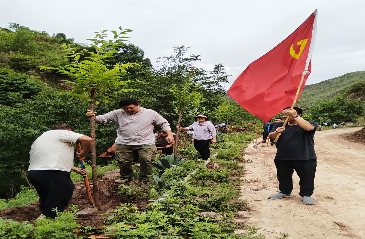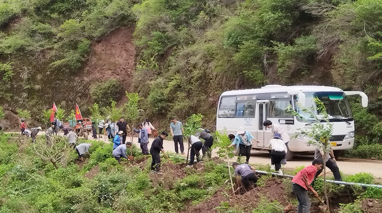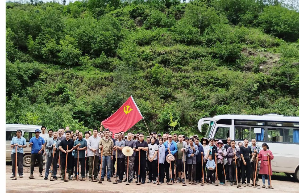 7月2日,元谋县交通运输局党支部联合老城乡老者格村党支部组织党员在老者格进村公路沿线开展义务植树活动,为党的103岁华诞增绿添美,用党建红点亮生态绿。
