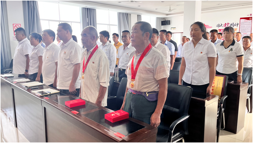 会上,在乡党委书记李从富的带领下,全体党员面对鲜红的党旗,重温入党誓词,一句句誓词铿锵有力、振奋人心,彰显了爱党情怀,诠释了坚定信仰,激发了奋进力量。随后,为2名在党50周年的老党员代表颁发“光荣在党50年”纪念章,并向他们表示热烈的祝贺和崇高的敬意,希望年轻党员向老党员学习。
