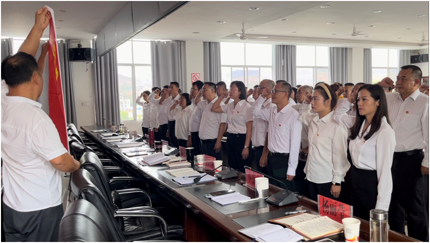 大会在庄严的国歌声中拉开帷幕,党员们纷纷起立,心中激荡着对祖国的热爱与忠诚,奏唱国歌。