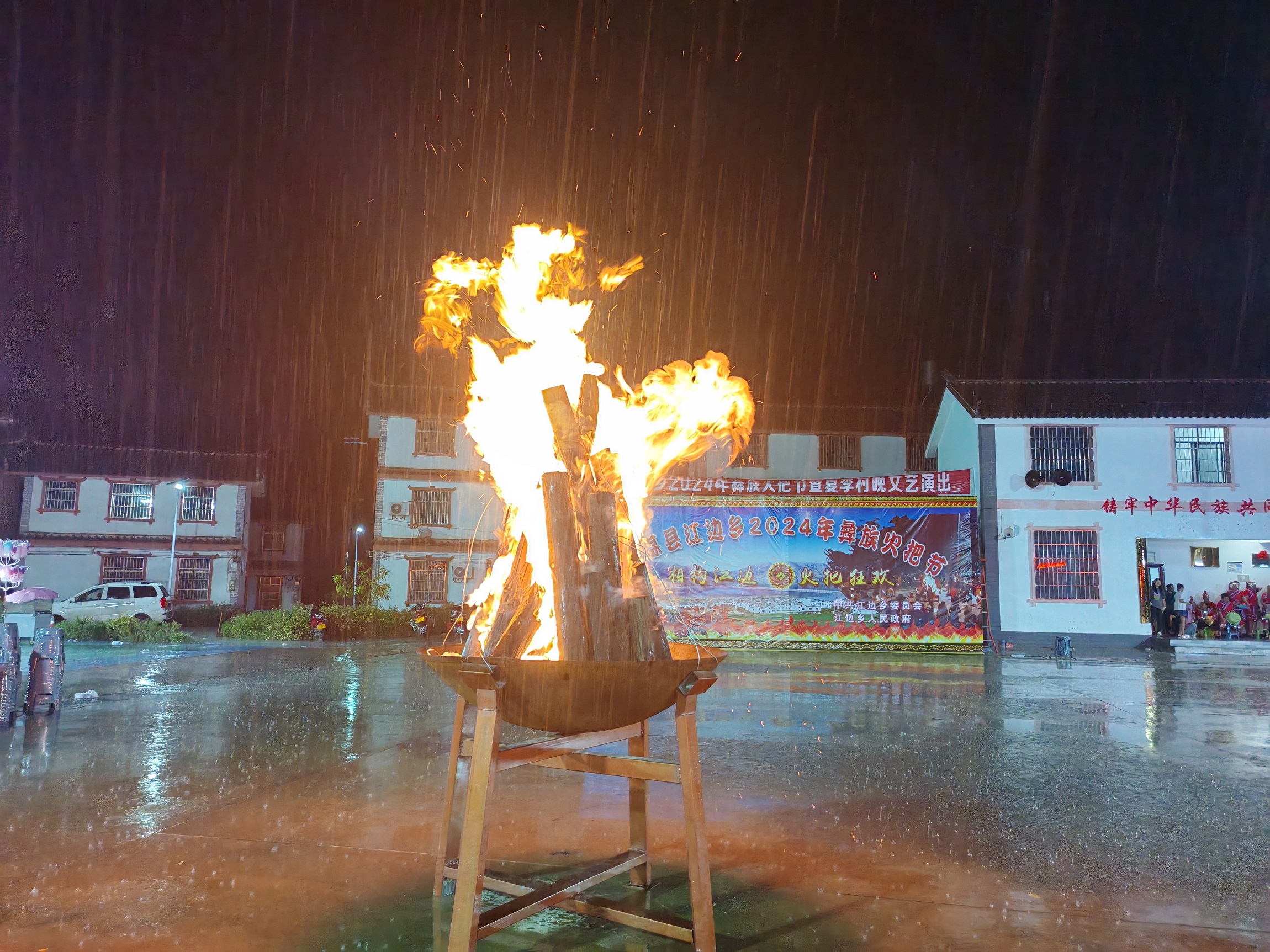 活动在燃烧的火把中落下帷幕,七月最热烈的火把迎来了期盼已久的甘霖,人们在雨中跳起了舞蹈,火在雨中越烧越旺,祝愿着江边各族儿女的生活将越来越火红。